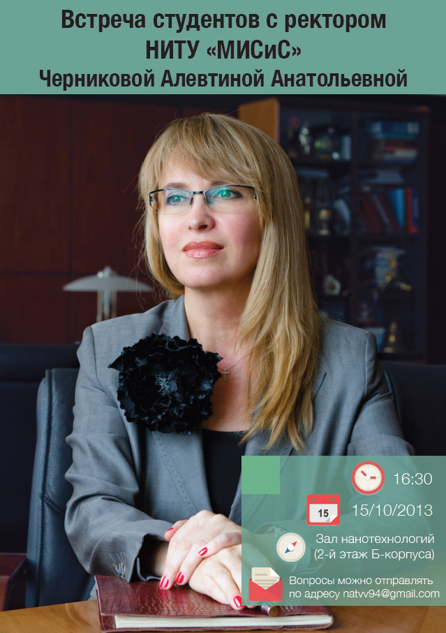 8 октября 2013 годаРазноеВстреча состоится в 16:30 15 октября в Зале нанотехнологий (2-й этаж Б-корпуса)Вопросы можно отправлять по адресу natvv94@gmail.com