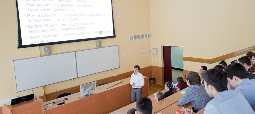 Занятия в потоковых аудиториях проводит большое число преподавателей, каждый из них во время лекций использует разное оборудование, разные источники информации, разговаривает с разным уровнем громкости и находится на определенном уровне технической грамотности. В результате проекта в каждой аудитории было создано удобное решение как для работы преподавателей, так и для студентов. Преподаватель может использовать любой удобный ему источник информации для отображения на экране (Интернет, локальную сеть вуза, ноутбук, планшет), легко управлять работой оборудования, например, включать проектор, опускать экран, регулировать громкость воспроизводимых материалов. Акустическая система позволяет студентам одинаково хорошо слышать преподавателя в любой точке аудитории, а система отображения информации воспроизводит качественное изображение, которое комфортно воспринимается студентами даже с большого расстояния.