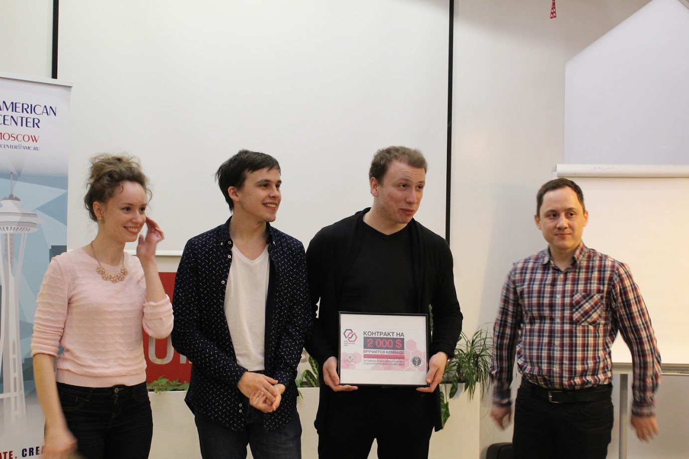 Перед участниками хакатона ставилась задача — разработать прототип информационно-развлекательного чат-бота c функцией регистрации посетителей / новостного агрегатора для навигации по ресурсам Американского культурного центра в Москве, которые будут интегрированы с веб-сайтом центра и смогут использовать технологии ИИ и машинного обучения. Главный приз — контракт на сумму $2000.