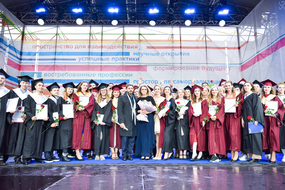 На малых сценах вместе с директорами институтов выпускников поздравляли почетные гости — Борис Коваленко, генеральный директор ЧТПЗ, Антон Емельянов, генеральный директор АО «Росэлторг», Константин Таперо, генеральный директор АО «Научно-исследовательский институт приборов».