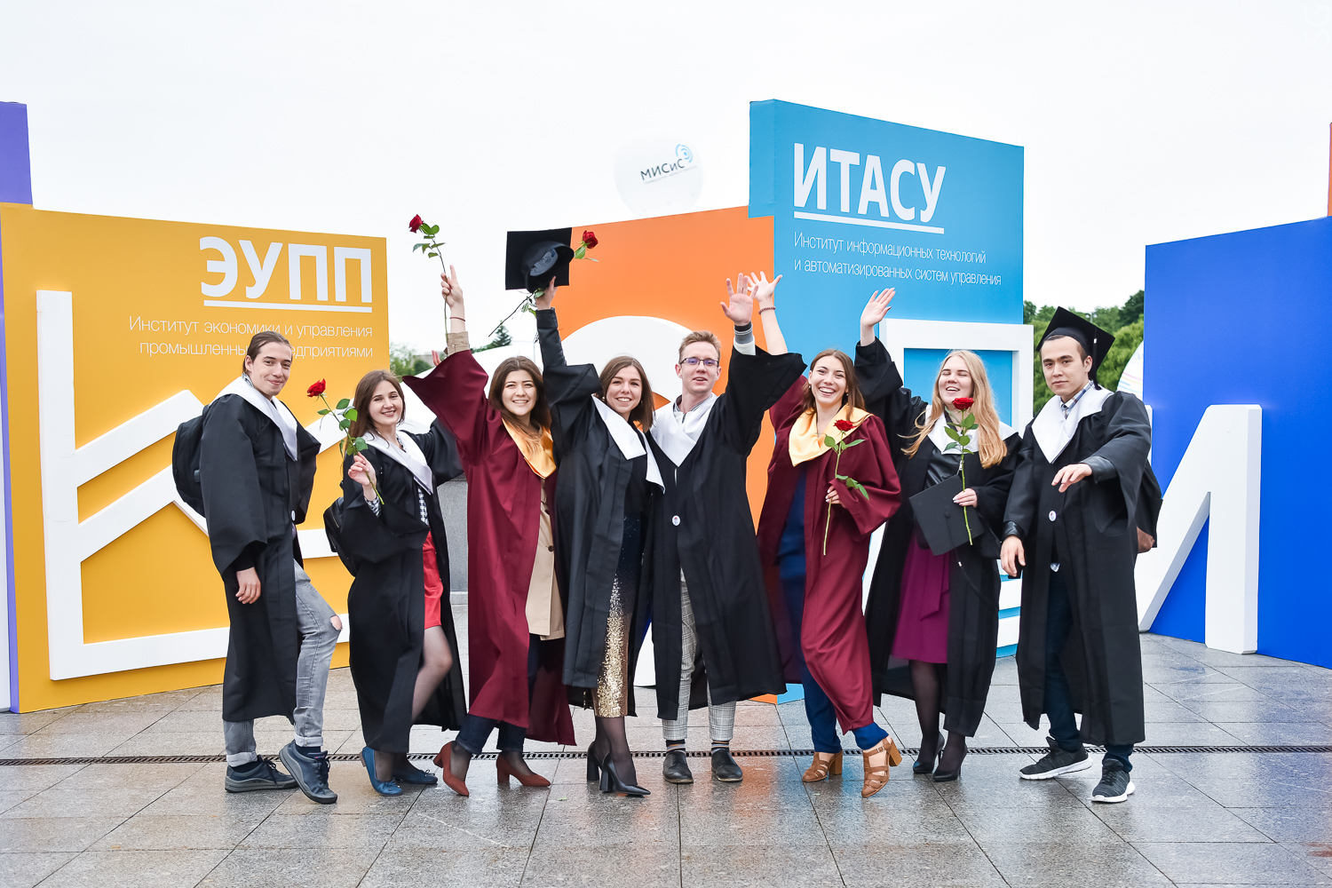 На малых сценах вместе с директорами институтов выпускников поздравляли почетные гости — Борис Коваленко, генеральный директор ЧТПЗ, Антон Емельянов, генеральный директор АО «Росэлторг», Константин Таперо, генеральный директор АО «Научно-исследовательский институт приборов».