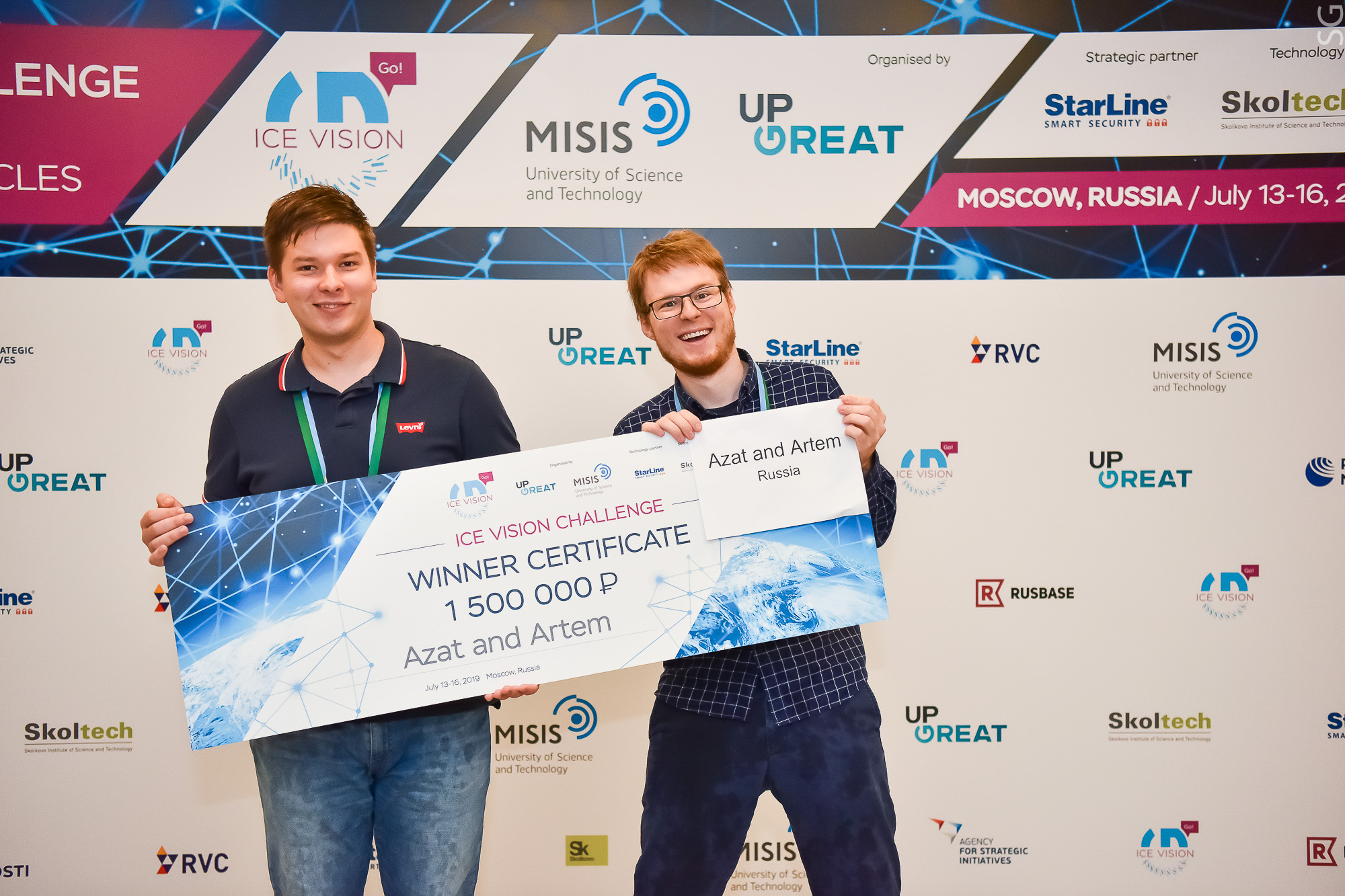 16 июля 2019 года были определены победители и призеры международного хакатона Ice Vision, направленного на разработку программных решений в области машинного зрения, которые позволят беспилотным автомобилям эффективно и точно распознавать дорожную обстановку в условиях русской зимы. Победителем стала команда молодых разработчиков компании NtechLab. В пятерку победителей вошли студенческие команды из МГУ имени Ломоносова, НИУ ВШЭ, СибГУ, Сколтеха и НГУ. Ice Vision организован в рамках серии технологических конкурсов Up Great в целях реализации Национальной технологической инициативы.