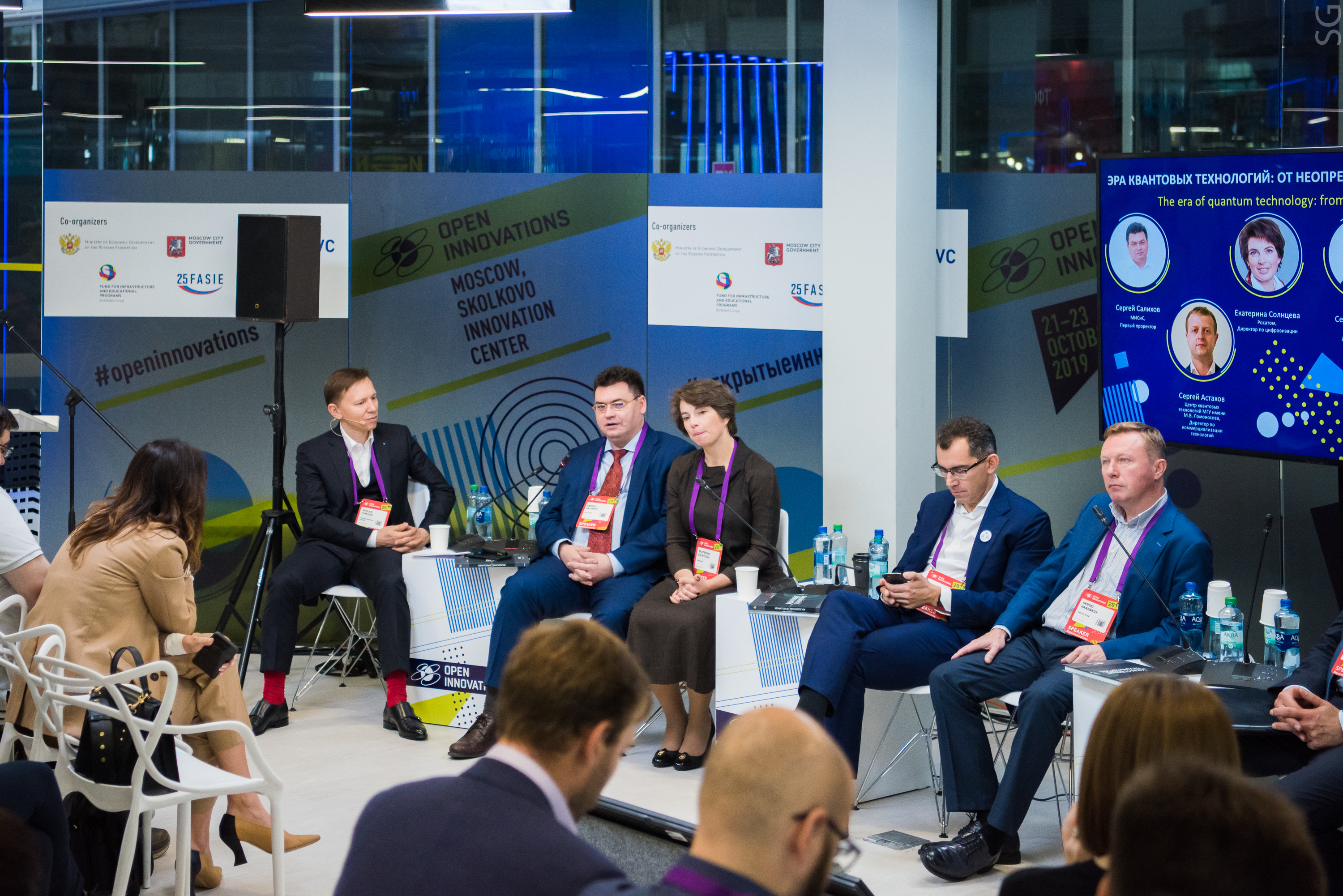В рамках форума «Открытые инновации-2019» 23 октября состоялась панельная дискуссия «Эра квантовых технологий: от неопределенности к сверхточности», в которой приняли участие представители Российского квантового центра, НИТУ «МИСиС», МГУ, Росатома, Ростелекома, РЖД, Газпромбанка — ключевых игроков формирующегося «квантового рынка». Участники дискуссии обсудили состояние квантовых технологий в России, механизмы поддержки квантовых разработок и ключевые направления их развития.