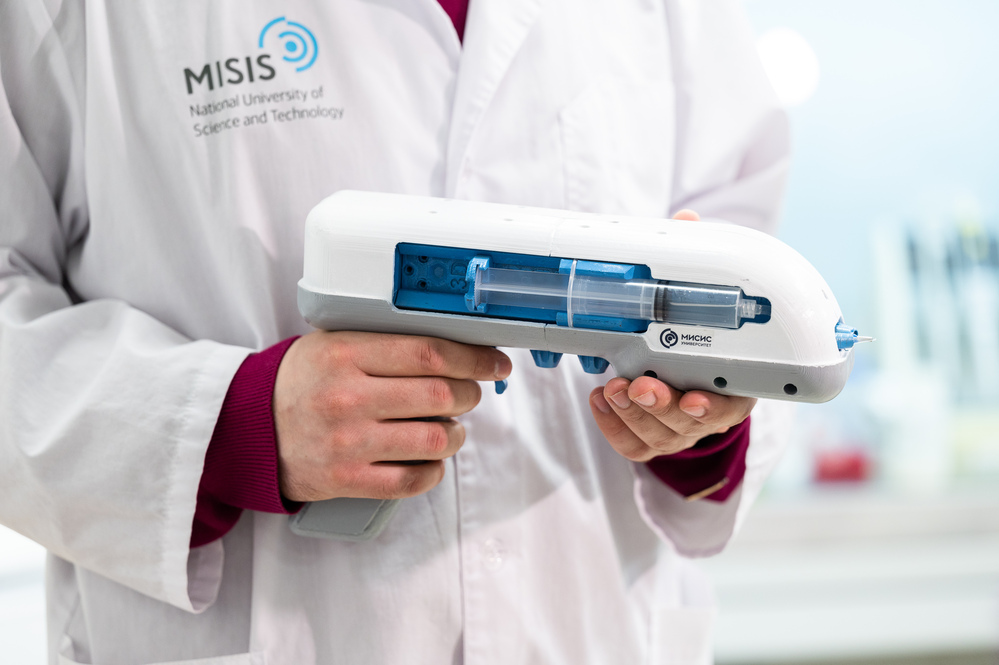 В Университете МИСИС представили первый в России «тканевой пистолет», который может останавливать кровотечения и запускать регенеративные процессы при ранениях легкой и средней степени тяжести. Устройство, созданное в лаборатории тканевой инженерии и регенеративной медицины, предназначено для работы в военно-полевых условиях и в зоне ЧС. Федеральной службой по интеллектуальной собственности выдан патент.