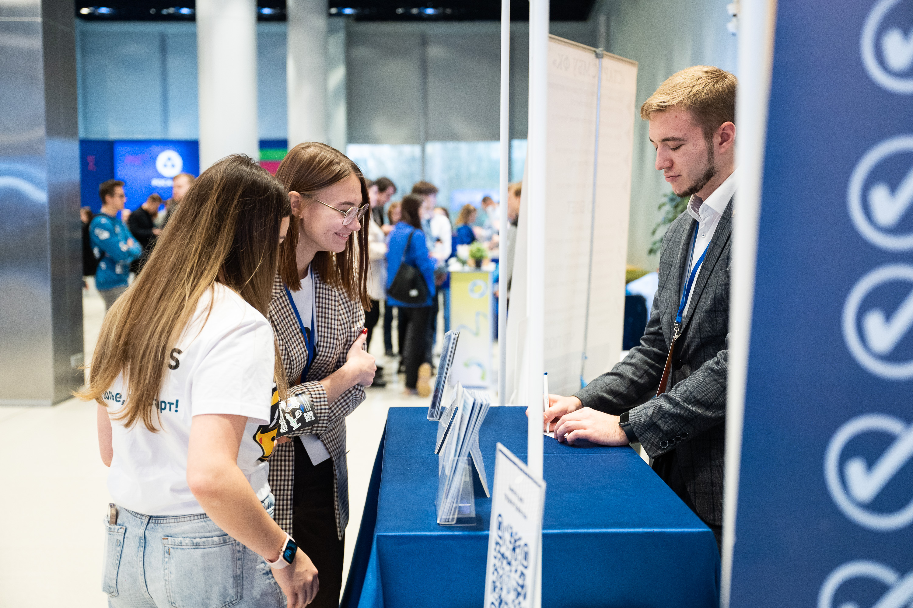 Отдельным направлением работы Ярмарки вакансий стали экспресс-собеседования. Все желающие могли пройти отбор в ДОМ.РФ, ЧМЗ, Международную алюминиевую компанию, UFirst, Highland Gold и Русметпром. Часть студентов сразу пригласили на оплачиваемые практики и стажерские программы, других отобрали для следующего этапа собеседования.