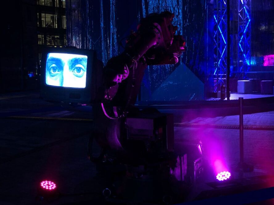 Первый проект от выпускников ArtTECH 2025 года Даниила Сладкова и Яники Колобаевой, представленный на выставке, — интерактивная инсталляция с AI-механиками «Знакомьтесь, Толик vol.3». Это интерактивный персонаж, управляемый искусственным интеллектом. Он слышит, видит, говорит и учится в диалоге. Его характер складывался в живом общении со зрителями: сначала в текстовом формате — в первых версиях проекта, а теперь в полной «телесной» форме с использованием роборуки. В версии 3.0 Толик обрёл тело: экран с мимикой, промышленную роборуку, выезжающий микрофон. Кураторами молодых художников выступили LYM ART — создатели арт-проектов для крупнейших международных фестивалей в России и лауреаты премий BEMA! и «Событие года». Они второй год выступают индустриальными партнерами магистратуры ArtTECH, предоставляя свое световое и роботическое оборудование для занятий и прохождения практики студентов.